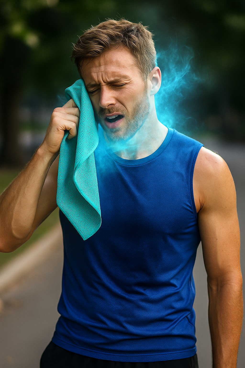 crée une sensation de fraîcheur instantanée lorsqu’elle est mouillée, essorée et secouée. Elle fonctionne par évaporation naturelle pour abaisser la